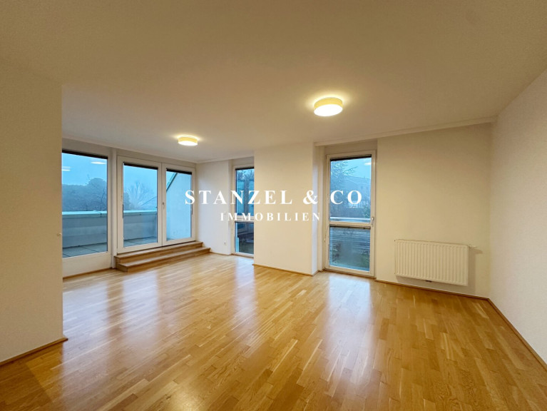 Sonnige 75m² große 3-Zimmer-Wohnung mit 5m² großer, gartenseitiger Terrasse.