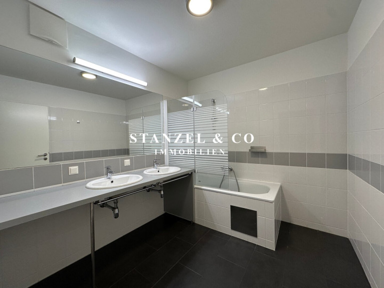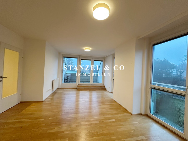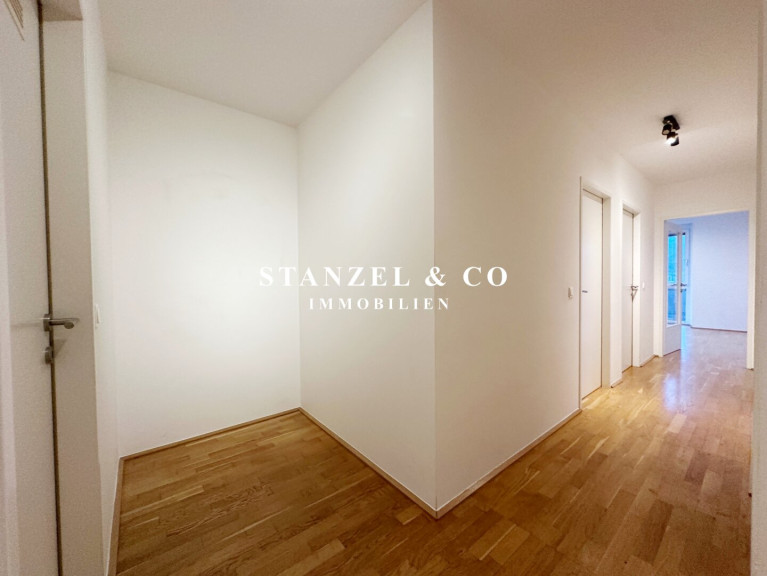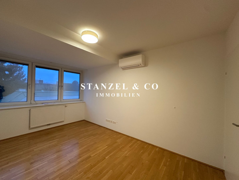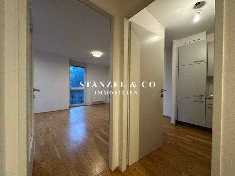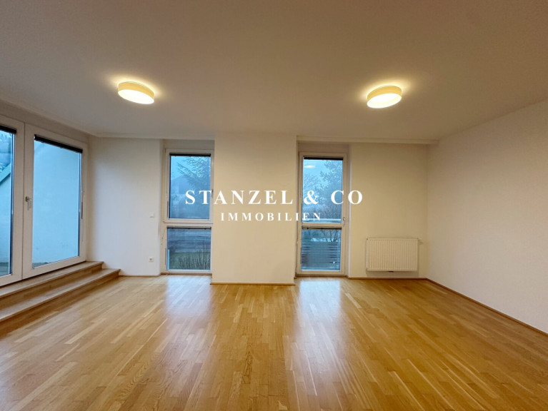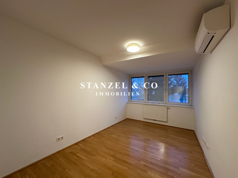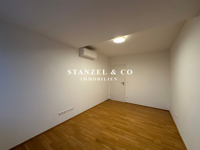 Vom 10m² großen Vorzimmer gelangt man in das sonnige, ostseitige 29m² Wohnesszimmer mit offener Küche und anschließender 5m² großer, gartenseitiger Terrasse. Die Küche ist ausgestattet mit einem Ceranfeld, Backrohr, Dunstabzug, Mikrowelle, Geschirrspüler und einer Kühl-Gefrierkombination. Die beiden Schlafzimmer sind 13m² und 10m² groß sowie gartenseitig - in großen Schlafzimmer gibt es eine Klimaanlage. Das Badezimmer ist mit einer Wanne, Doppelwaschtisch + fliesenbündigem Spiegel, Handtuchtrockner sowie einer elektrischen Entlüftung ausgestattet ist. Das WC mit Handwaschbecken, Spiegel und elektrischer Entlüftung ist separat und es gibt einen 6m² großen Wirtschaftsraum mit Waschmaschinenanschluss.