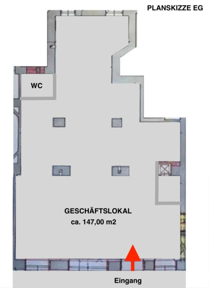 EG: VERKAUFSLOKAL, GALERIE, ATELIER, PRAXISRÄUMLICHKEITEN - straßenseitiger Eingang mit ca. 147,68 m2, Raumhöhe ca. 3 m