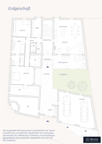 Die in diesem Dokument enthaltenen Texte, Visualisierungen und Staging-Darstellungen dienen ausschließlich der Illustration. Sie wurden teilweise mithilfe von KI erstellt und stellen keine verbindliche Aussage über Ausstattung, Zustand oder Bebaubarkeit dar.