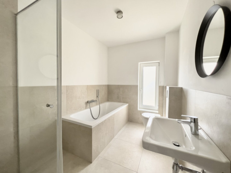 - Großformatige, elegante Fliesen in den Nassräumen