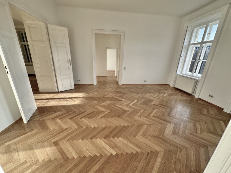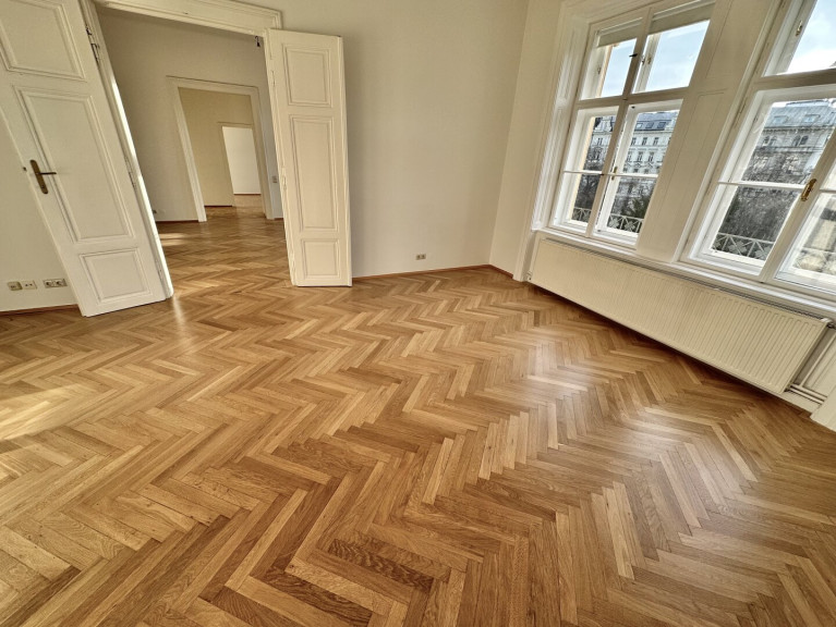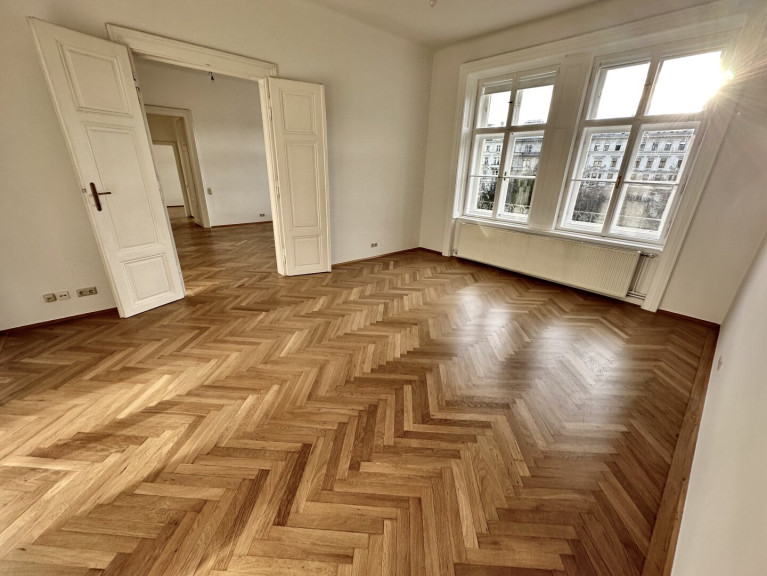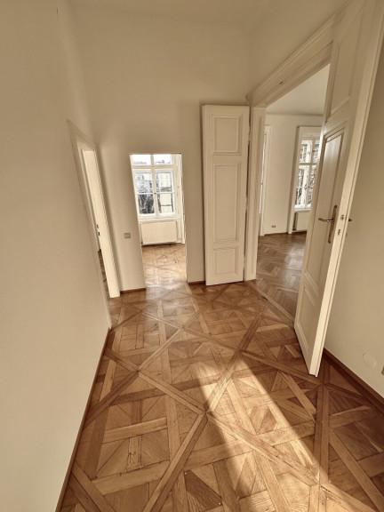 In einer der vornehmsten und zugleich ruhigsten Adressen des 1. Bezirks präsentiert sich diese lichtdurchflutete 117 m² große Wohnung als seltenes Juwel.