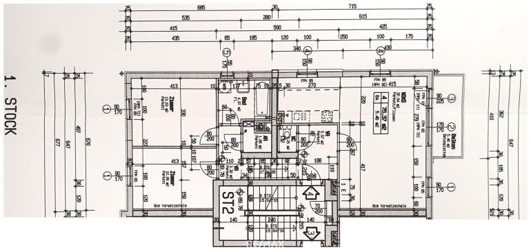 Der Vorraum bringt Sie über einen Stiegenabgang auf die zweite Ebene, wo Sie zwei nord-ost-seitige Zimmer (ca. 12 m² und ca. 14 m²), das Bad mit Badewanne und Fenster sowie den Abstellraum vorfinden.
