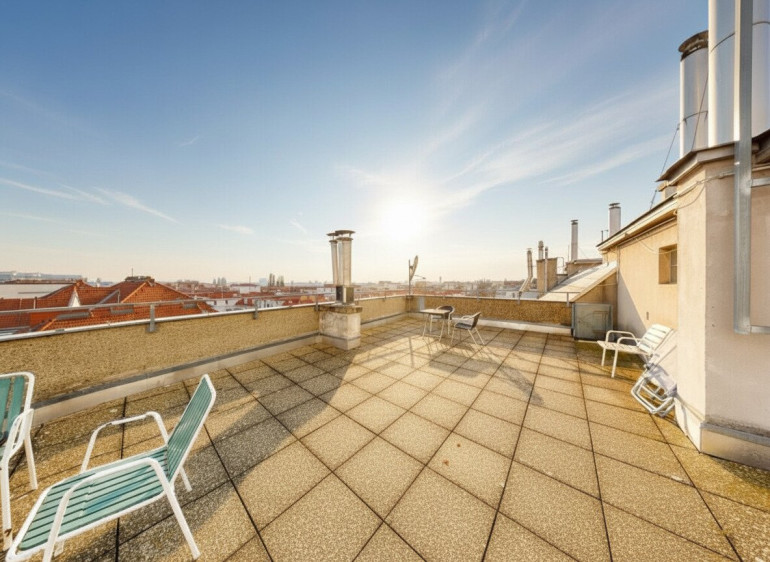 Denn das größte Zuckerl hier ist die wunderbare, gemeinschaftliche Dachterrasse, die man in Häusern dieses Baujahres sonst fast nie findet! Ein Ort der Kommunikation, zum Relaxen, zum Plaudern, für einzigartige, genußvolle Sommerabende, mit erstklassigem Floridsdorfer Ausblick.
