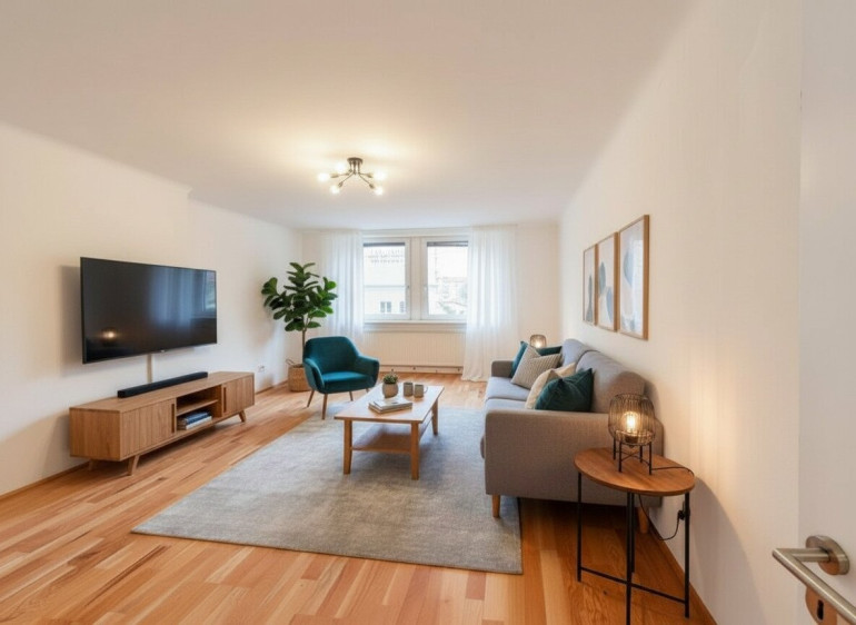 ANMERKUNG: Wohn- und Schlafzimmer wurden zur Veranschaulichung mittels KI möbliert.