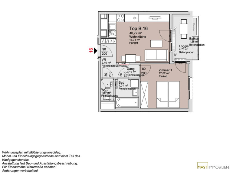 Details Wohnung Bauteil B Top 16: