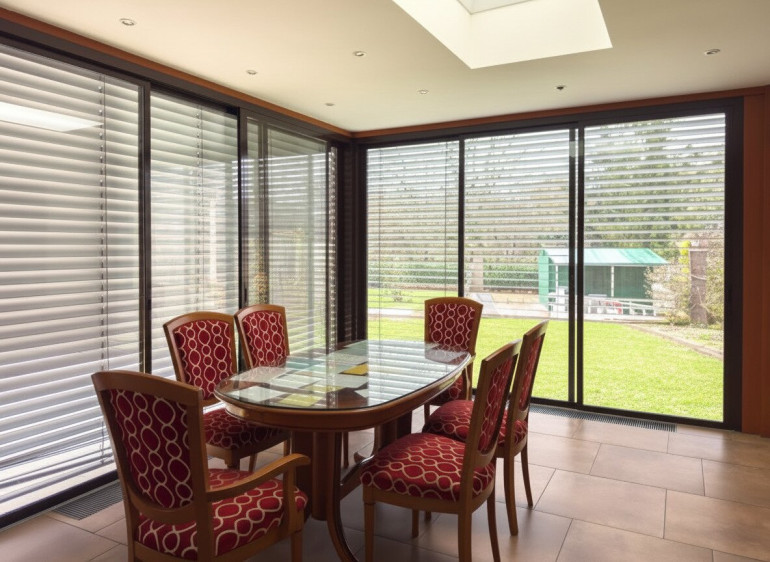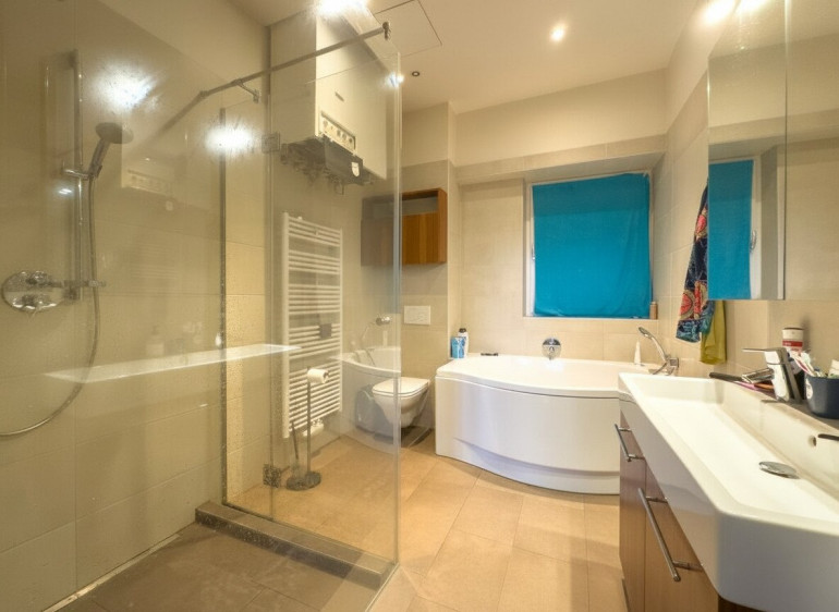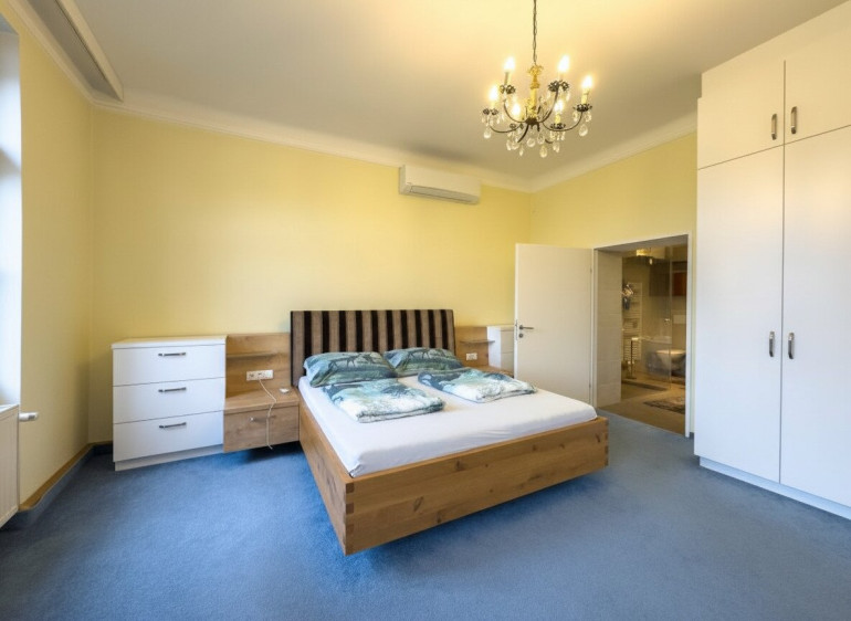 Beide Wohneinheiten verfügen über je ein Badezimmer mit WC sowie über unterschiedliche Bodenbeläge (Melan/Laminat, Fliesen, Teppich). Mehrere Räume – ebenso wie der Wintergarten – sind klimatisiert. Der Altbestand ist mit klassischen Holzkastenfenstern ausgestattet mit außenliegenden Jalousien (zusätzlicher Sonnenschutz), während die Zubauten moderne Alufenster mit Isolierverglasung besitzen. Die beiden Wohneinheiten verfügen über getrennte Stromzähler.