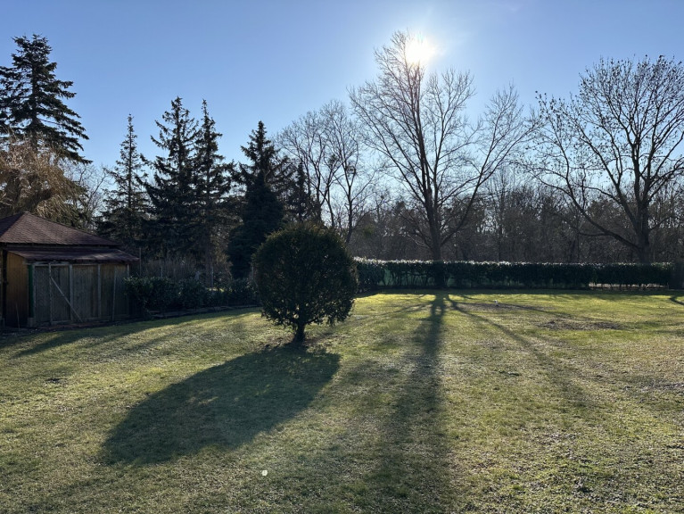 Der Garten bietet viel Platz und Ruhe, ergänzt durch eine Gartenhütte und ein Doppel-Carport mit zwei elektrischen Rolltoren in Lamellenbauweise. Bitte beachten Sie, dass manche Bilder KI generiert sind und nur zur besseren Veranschaulichung dienen.