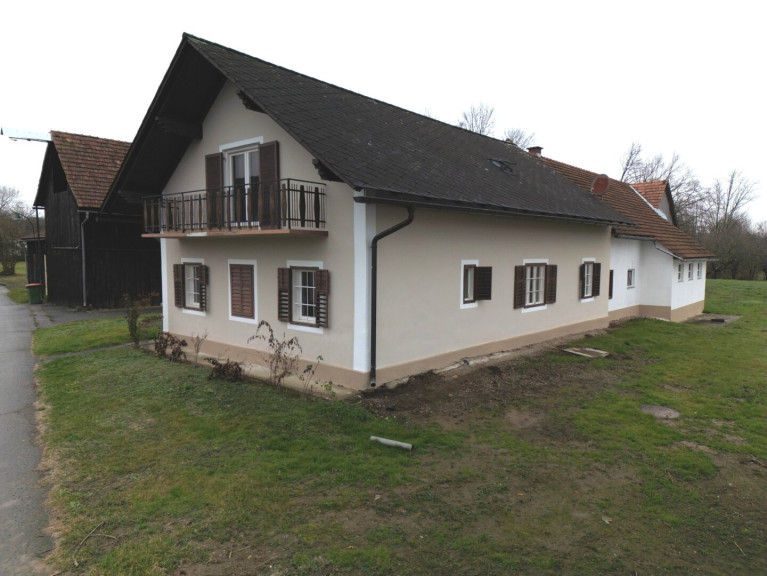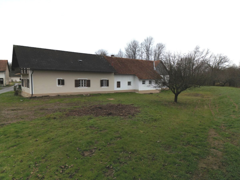 Eichfeld / Mureck - Wir dürfen hier eine Hofstelle ( inaktive Landwirtschaft ) auf knapp 1 ha Grund ( ca. 3100 m² davon BaulandDorfgebiet ) in Grünruhelage anbieten. Die Liegenschaft befindet sich am Ortsrand, angrenzend Felder und Wald, und bestehet aus dem Haupthaus, ehemaligen Stallungen, einer Scheune und einem großen Schuppen sowie einem weiteren Nebengebäude. Hierzu kommen noch 2 angrenzende Baugrundstücke mit je ca. 1030 m² , dies ergibt eine Gesamtgröße von ca. 11.404 m²
