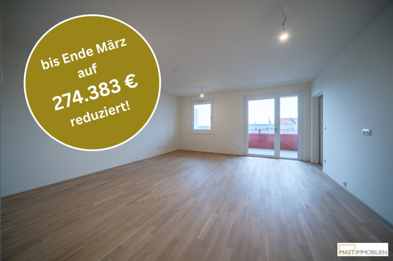 *Während der Aktion werden die Verkaufspreise um 6,5 % reduziert. Dies entspricht den durchschnittlichen Nebenkosten beim provisionsfreien Wohnungskauf (1,9 % Vertrags-errichtung, 3,5 % Grunderwerbsteuer, 1,1 % Eintragungsgebühr). Die auf Basis des um 6,5% reduzierten Kaufpreises berechneten Nebenkosten sind über den Treuhänder zu begleichen. Eine mögliche Gebührenbefreiung gem. § 25a iVm § 25b Gerichtsgebührengesetz kann zusätzlich in Anspruch genommen werden.