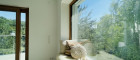 Badezimmer mit Tageslicht Fenster und Gartenblick, Badewanne, Regendusche
