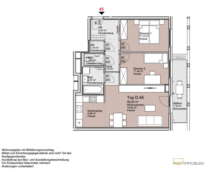 Alle verfügbaren Wohnungen finden Sie auf unserer Homepage unter www.mast-immo.at. Um Ihre Suche zu erleichtern, steht Ihnen auf unserer Projektseite www.anderschanze25.at ein Wohnungsnavigator zur Verfügung, der Ihnen hilft, sich einen Überblick über die Lage der einzelnen Wohnungen innerhalb des Komplexes zu verschaffen.