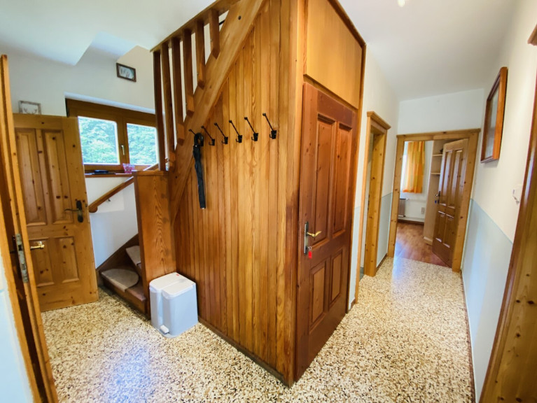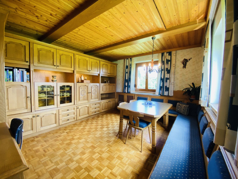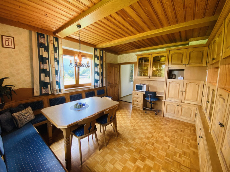 Zur Vermittlung gelangt ein gepflegtes Ferienhaus in der Gaal mit insgesamt fünf Schlafzimmern. Die Immobilie bietet ausreichend Platz für Familien oder größere Gästegruppen und eignet sich sowohl für die private Nutzung als auch für die touristische Vermietung. Die Raumaufteilung ist funktional und gleichzeitig gemütlich gestaltet, wobei traditionelle Holzelemente dem Haus einen typischen und warmen Charakter verleihen.