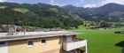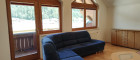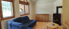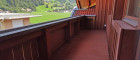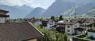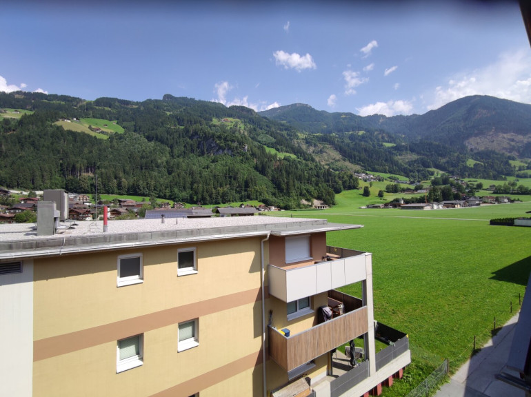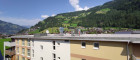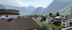 Vom Wohnzimmer aus gelangt man auf einen Balkon mit schönem Bergpanorama.