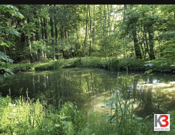 Auf dem rund 13.750 m² großen Grundstück erwarten Sie ein Fischteich und ein eigener Waldanteil, die für Ruhe, Privatsphäre und Naturnähe sorgen.