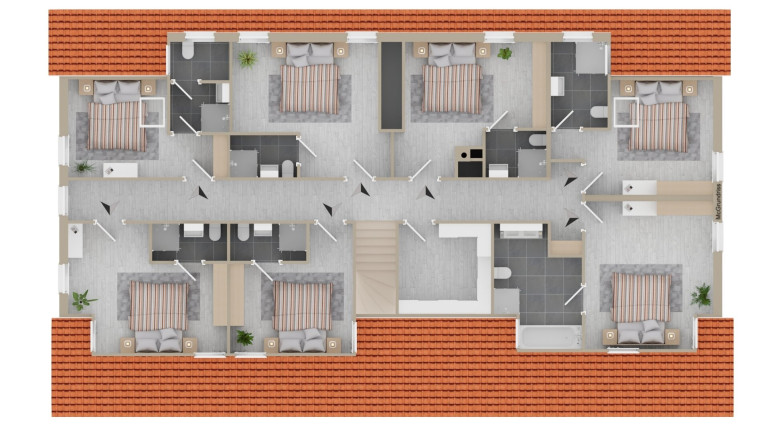 1.OG: - Zimmer von ca.12m² bis ca. 20m² - Bäder von ca. 3m² bis ca. 10m² - Abstellraum ca. 9m² - Gang ca. 26m²