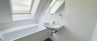 - Badezimmer mit Badewanne und Waschmaschinenanschluss