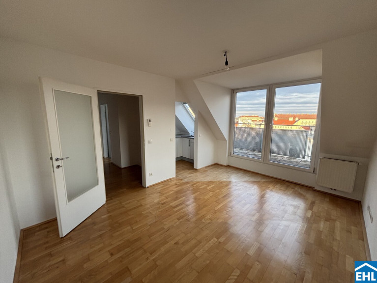 Die verfügbare Wohnung befindet sich im 1. Dachgeschoss und kann leicht mit dem Lift erreicht werden. Sie gliedert sich in eine großzügige Wohnküche mit Einbauküche, ein über den Vorraum begehbares Schlafzimmer, ein Badezimmer mit Badewanne und Waschmaschinenanschluss und ein separates WC. Die dazugehörige Terrasse rundet dieses Wohnerlebnis perfekt ab.