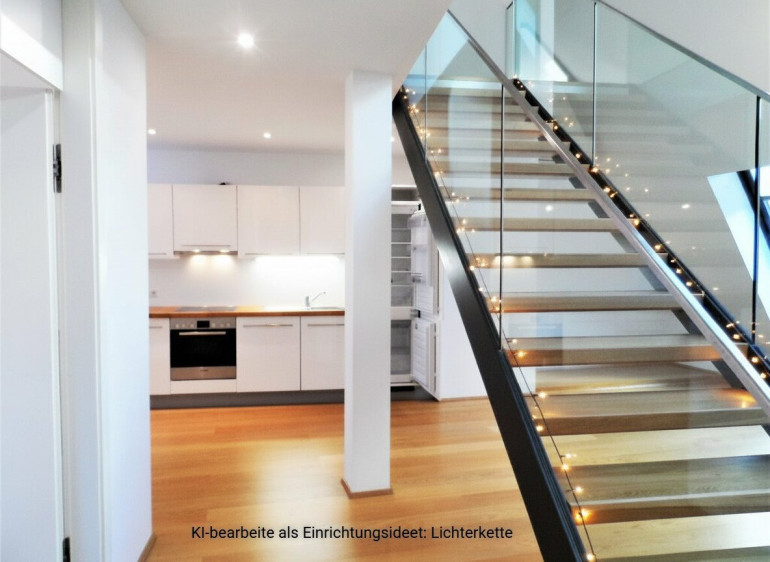 Über die Stiege inmitten des Raumes gelangen Sie in das obere Stockwerk der Wohnung. Dort befindet sich eine offen gestaltete Galerie, die sich vielseitig nutzen lässt. Zu beachten ist, dass dieser Bereich offen gestaltet ist und nicht durch eine Tür abgetrennt ist! Zusätzlich steht ein weiteres, durch eine Tür abgetrenntes Zimmer mit ca. 31 m² zur Verfügung.