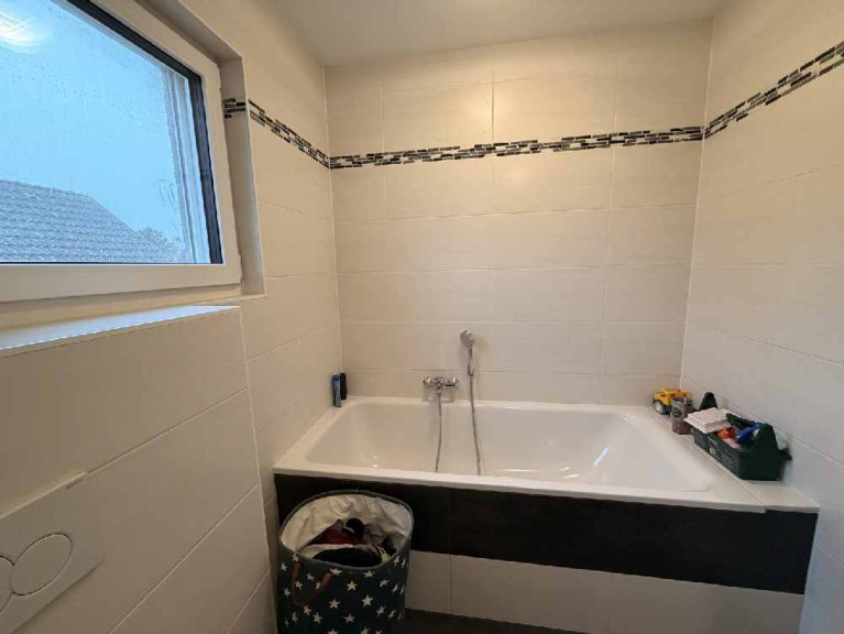 - Badezimmer mit Badewanne und Fenster