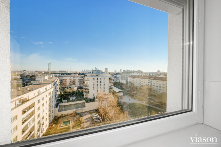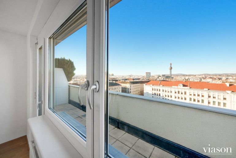 - GESCHOSS: 9. Stock (zum Lift sind es 6 Stufen, der Lift führt bis in den 8.Stock, 1 Stock höher (18 Stufen) liegt die Wohnung