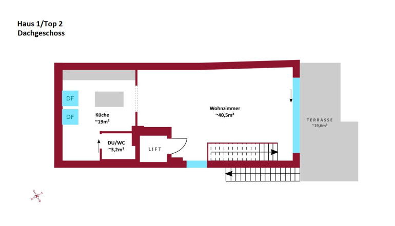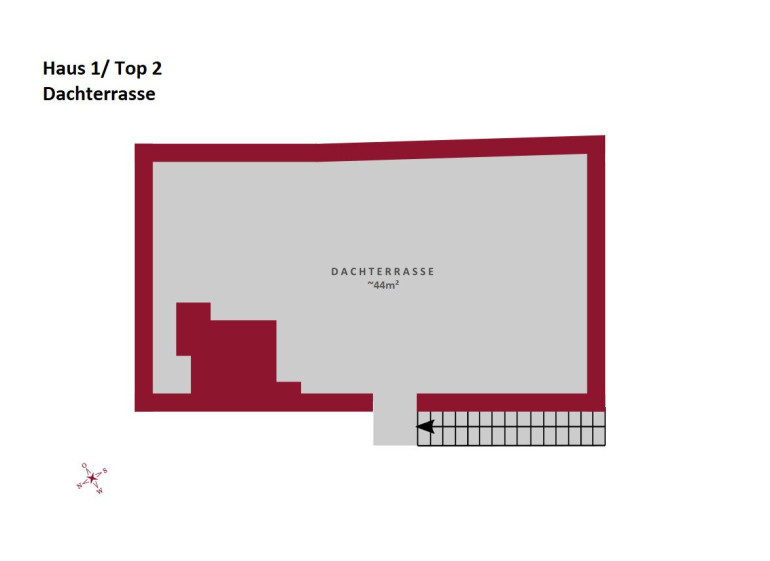 - äußerst geräumige Wohnküche mit Ausgang auf die Terrasse, welche zur ca. 44m² großen Dachterrasse führt