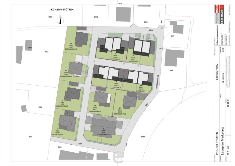 Das Siedlungsprojekt besteht aus 8 Doppelhaushälften und 2 Einfamilienhäuser und befindet in einer neuen Wohnsiedlung "In der Au" in Steyrermühl, einem Ortsteil der Stadtgemeinde Laakirchen - eingebettet von Hügeln, Wäldern und Flüssen nahe der A1-Westautobahn.