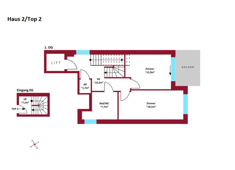 - Top 2: Wohnfläche: ca. 123,8m²; 4 Zimmer; Balkon: ca. 7,9m²; Terrasse: ca. 22,9m²; Dachterrasse: ca. 50,1m²; Kaufpreis: 1.149.000,-- Euro