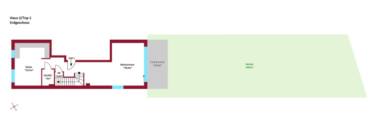 - Top 1: Wohnfläche: ca. 102,5m²; 3 Zimmer; Garten: ca. 207m²; Terrasse: ca. 15,4m²; Kaufpreis: 949.000,-- Euro