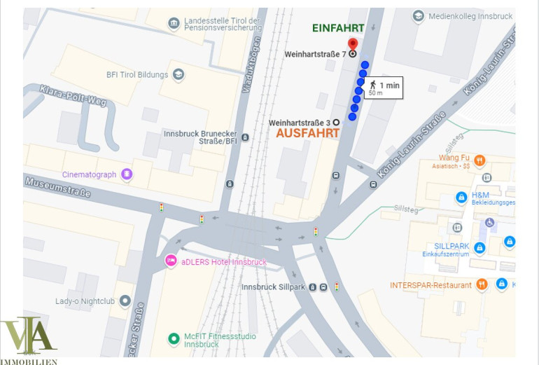 Zentrale Lage nahe EKZ SILLPARK sowie Hauptbahnhof Innsbruck.