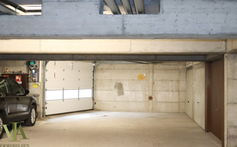 Ein Garagenabstellplatz und zwar eine der in die Wohnanlage integrierten Garagenboxen mit dem eigenen Schwingtor und Stauraum hinter dem Autoabstellplatz innen sowie ein Kellerabteil sind im Kaufpreis inbegriffen.