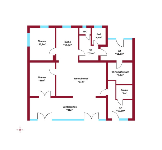 Dieses gepflegte und sehr helle Einfamilienhaus bietet Ihnen auf großzügigen 156 m² Fläche einen durchdachten Grundriss und einen schönen Wohnbereich mit drei Zimmern plus 30 m2 Wintergarten. Ein weiterer Raum ergänzt die Wohnfläche mit einem Saunabereich und einer zweiten Dusche. Da dieser Bereich auch vom Garten aus betreten werden kann, würde er sich auch als separate Wohneinheit für ältere Kinder oder als Gästebereich nützen lassen.