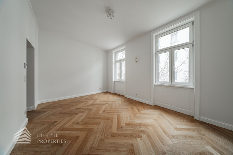 Eleganter Deckenstuck und feine Vertäfelungen unterstreichen den einzigartigen Alt-Wien-Charakter. Traditionelle Holzkastenfenster, die durch moderne Isolierverglasung aufgewertet wurden zieren straßenseitig die Fassade. Die Wärmeversorgung und Warmwasserbereitung erfolgt über Gasetagenheizung. Die Wärmeverteilung in der Wohnung erfolgt mittels Fußbodenheizung.