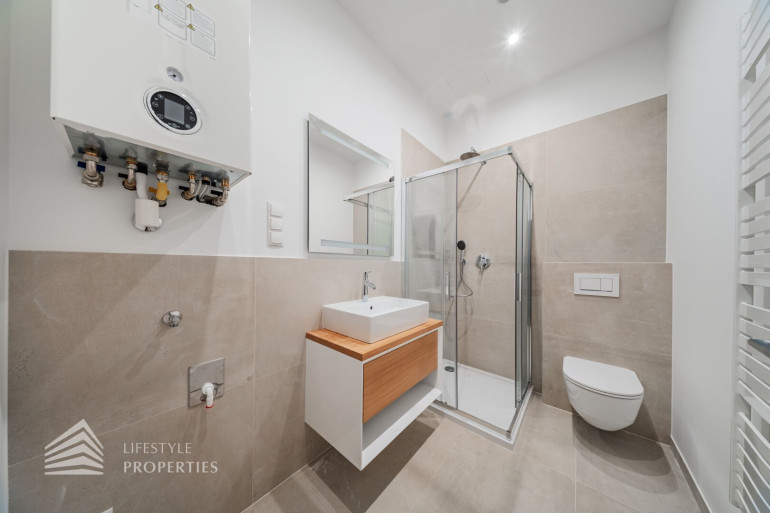 Fliesen, Parkett, Gas, Fußbodenheizung, Wohnküche / offene Küche, Personenaufzug, Dusche