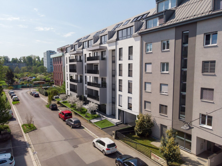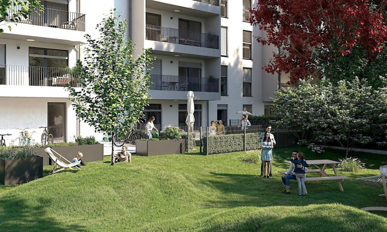 Die Wohnungen bieten großzügige Balkone oder Loggien, vereinzelt auch weitläufige Terrassen oder einen privaten Garten. Die Außenbereiche laden zum Entspannen und Genießen der in der frischen Luft ein. Vor allem die exklusiven zweigeschossigen Mansarden-Wohnungen von 101 bis 164 m² sind besonders reizvoll.
