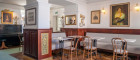 Der Gastraum (ca. 53 m²) beeindruckt durch hohe Decken, großzügige Fensterflächen und ein edles Fischgrätparkett, das dem Raum eine warme, einladende Stimmung verleiht. Im Eingangsbereich sorgt Rauriser Naturstein für einen repräsentativen ersten Eindruck – traditionell, hochwertig und authentisch.