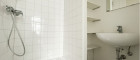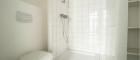 - Badezimmer: Dusche, Waschbecken und Toilette.