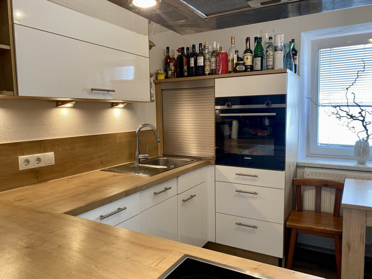 Die Küche im Dachgeschoss wurde 2012 neu eingebaut. Modern, groß und mit allem was man braucht. Bestens erhalten.