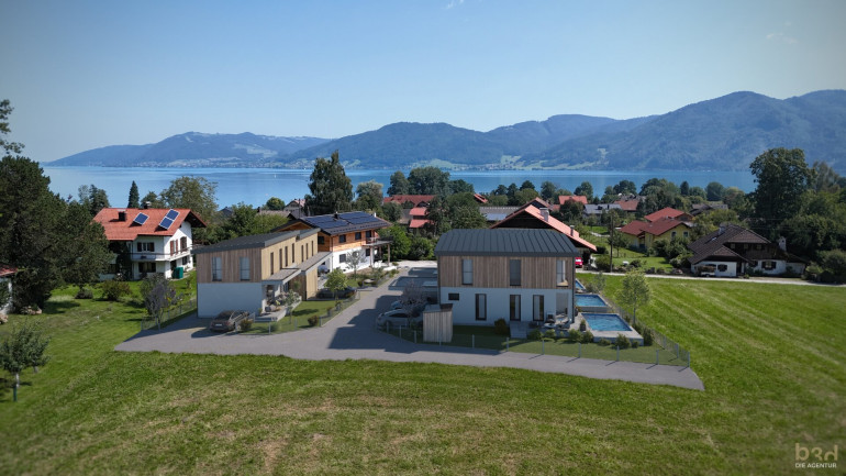 In absoluter Ruhelage am Westufer des Attersees mit der malerischen Bergkulisse des Salzkammerguts im Hintergrund entsteht ein hochwertiges Doppel- und Reihenhaus im Wohnungseigentum in ansprechender Architektur. Bei den südseitig ausgerichteten Einheiten wurde bei der Planung, unter bestmöglicher Berücksichtigung der Rahmenbedingungen und örtlichen Gegebenheiten, auf ein modernes Raumkonzept mit besonderem Augenmerk auf praktikable Nutzbarkeit geachtet. Ausgewählte Materialien, hochwertige Boden- und Wandbeläge, modernes Heizungssystem (Luftwärmepumpe / FB-Heizung) in Kombination mit einer Photovoltaikanlage bieten ein Höchstmaß an Komfort und Bequemlichkeit.