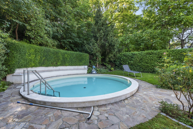 Grundstück: ca. 1.100 m² – sonniger, uneinsichtiger Garten (ca. 795 m²) mit Pool und Lounge-Area
