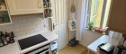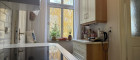 Küche mit Zugang zum Badezimmer (Dusche, Bidet, Fenster)