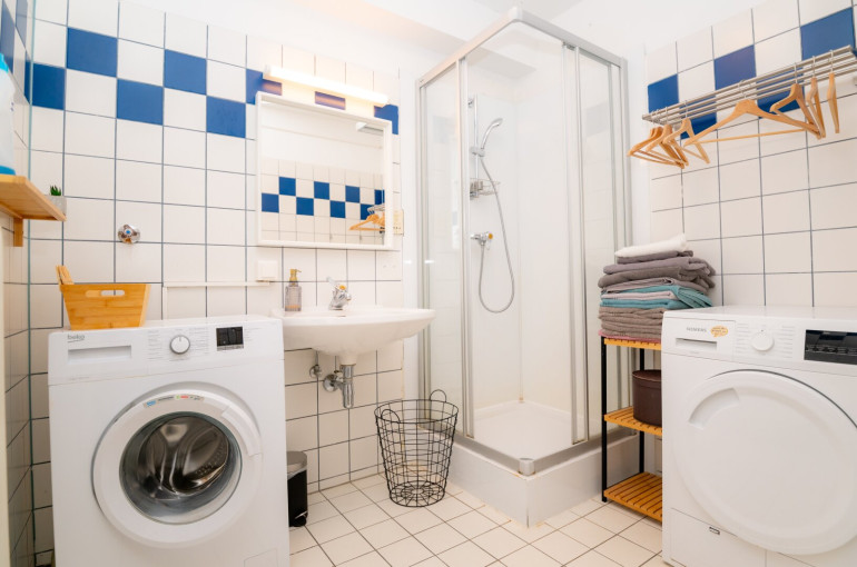 Fliesen, Parkett, Fußbodenheizung, Einbauküche, Dusche, Wasch/Trockenraum