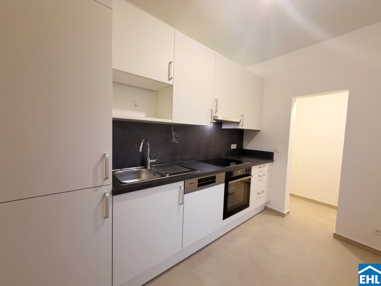 Die Wohnung befindet sich im Erdgeschoss und verfügt über eine Einbauküche, zwei Schlafzimmer, ein Wohn- Esszimmer, ein Badezimmer mit Badewanne und Waschmaschinenanschluss, ein separates WC, einen Abstellraum und einen Vorraum.
