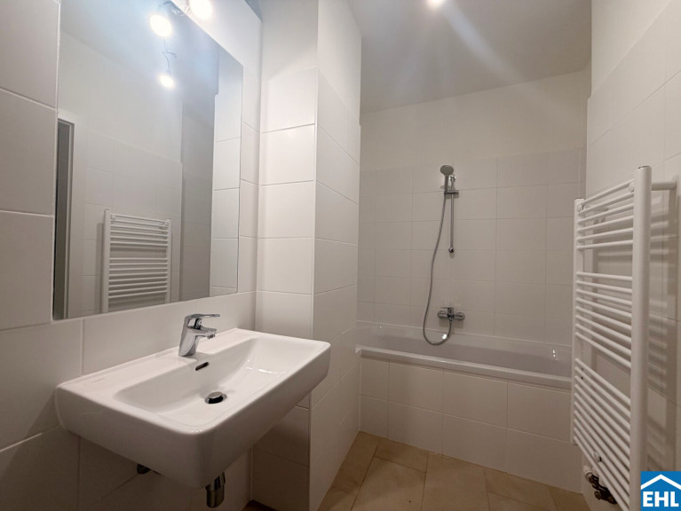 - Badezimmer mit Badewanne und Waschmaschinenanschluss