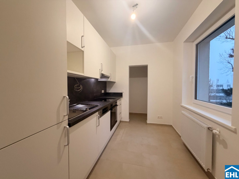 Die Wohnung befindet sich in der 3. Etage und verfügt über eine Einbauküche, zwei Schlafzimmer, ein Wohn- Esszimmer, ein Badezimmer mit Badewanne und Waschmaschinenanschluss, ein separates WC, einen Abstellraum und einen Vorraum.
