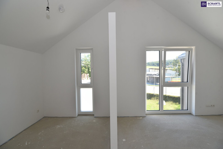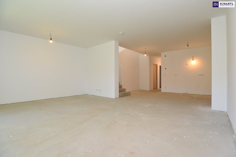 Die dargestellten Bilder mit Bodenbelägen, Küche oder Einrichtungsgegenständen dienen lediglich zur veranschaulichenden Darstellung. Das Haus wird belagsfertig, weiß ausgemalen (ohne Innentüren) übergeben – die endgültige Gestaltung der Oberflächen, Böden und des Interieurs obliegt dem Käufer.