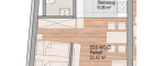 - Küche: 9,06 m² – funktionale, voll ausgestattete Küche mit direktem Zugang zum Wohn-Ess-Schlafbereich.