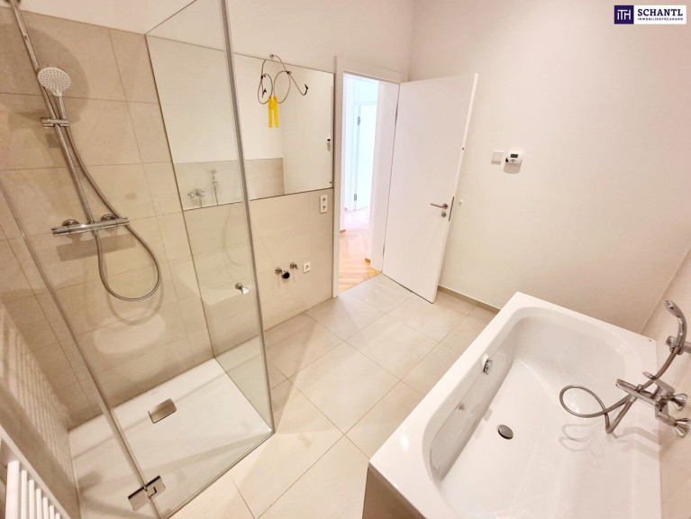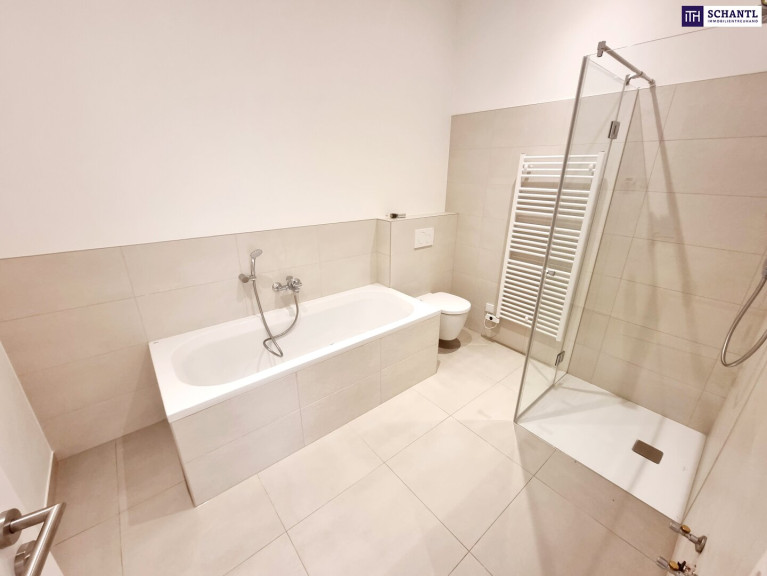 Ihre neue Wohnung wird Sie restlos begeistern und teilt sich in einen einladenden Vorraum, eine separate und sehr gräumige Garderobe inkl. Waschmaschinenanschluss, ein separates WC mit Handwaschbecken und Fenster, ein großes Familien-Badezimmer mit Dusche, Badewanne und 2.WC, 2 getrennt begehbare und geräumige Schlafzimmer, sowie das Herzstück der Wohnung - einen Wohn-Essbereich mit Zugang zur Terrasse und dem riesigen Eigengarten. Der Wohn-Essbereich ist großzügig gestaltet und teilt sich in ein Esszimmer mit vorbereiteten Küchenanschlüssen und ein direkt verbundenes, separates Wohnzimmer.
