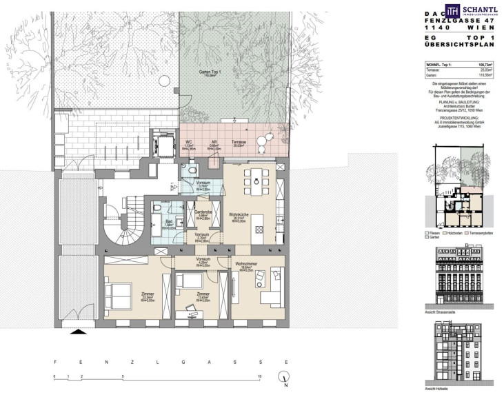 Wohnfläche: ca. 106,73m² + Terrasse: ca. 20,03m² + Eigengarten: ca. 116,56m² + Kellerabteil: ca. 3,53m²