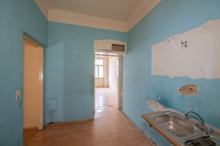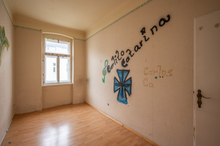 Die Wohnung ist sanierungsbedürftig und verfügt derzeit über keine Heizung und kein Badezimmer/WC.